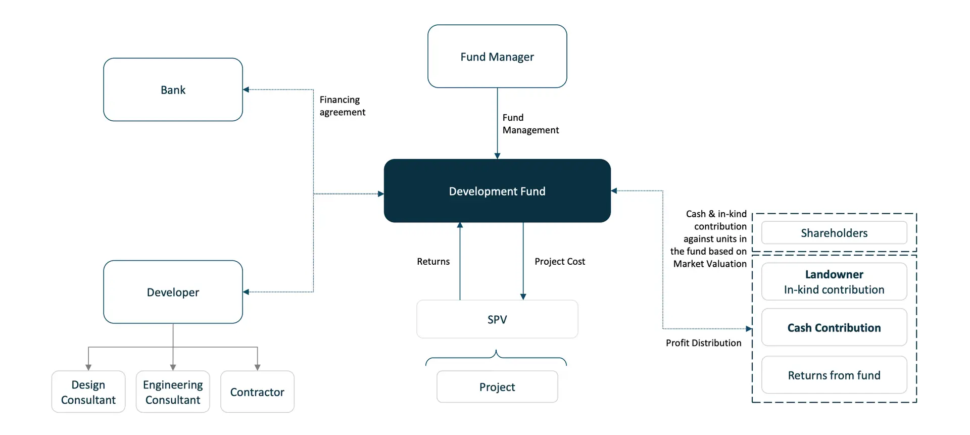 - Where single or multiple investors contribute into a fund that will acquire an income generating property